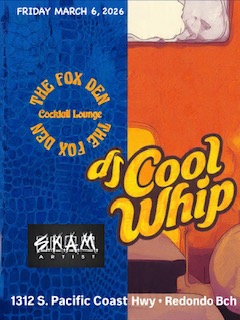 | Fri Mar 06 | Redondo Beach, CA, United States | DJ Coolwhip | The Fox Den | Flyer |