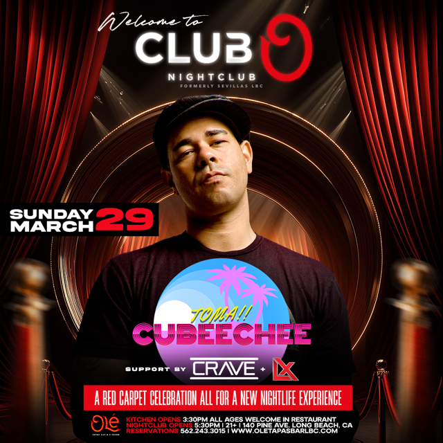 | Sun Mar 29 | Eric Cubeechee | Long Beach, CA, United States | Club O Long Beach | Flyer | Venue Info | Guestlist | |