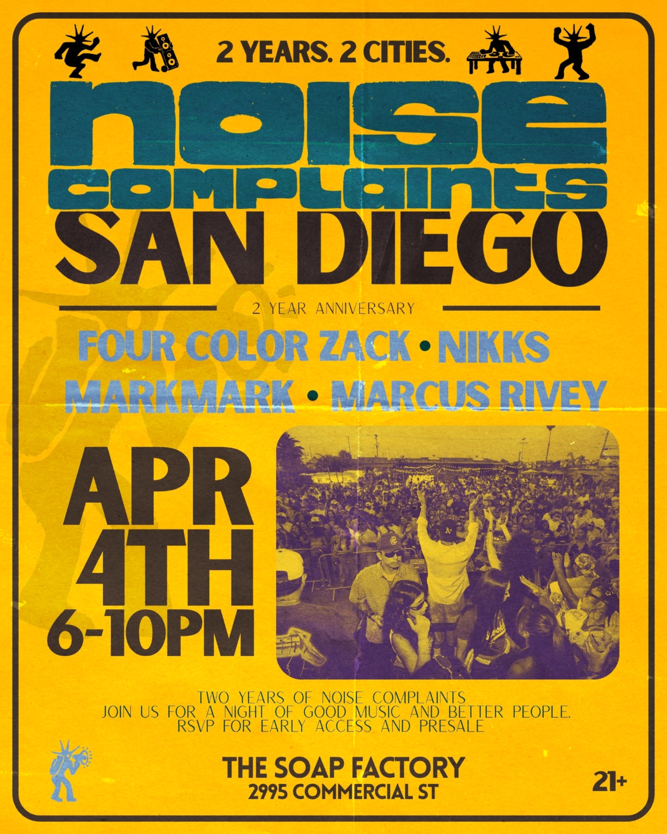 | Sat Apr 04 | Four Color Zack | San Diego, CA, United States | The Soap Factory | Flyer | Venue Info | Guestlist | |